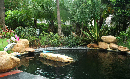 半遮半掩的外圍讓整個(gè)空間更有層次感,可愛的綠植盛開著,清澈的池水在微風(fēng)中蕩漾,讓各區(qū)域流暢的銜接在一起,無不讓人感到舒適、愜意。