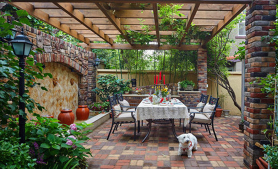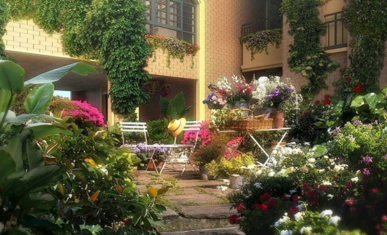 清晨或是傍晚,陽光透過樹葉溫和的撒向庭院,
