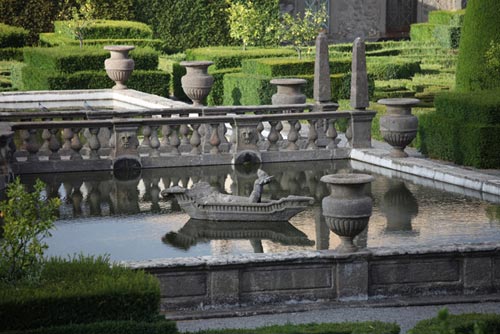 由于意大利半島的三面瀕海,多山地丘陵,因而其園林建造在斜坡上。在沿山坡引出的一條中軸線上,開辟了以層層的臺地、噴泉、雕塑等,植物采用黃楊或樹組成花紋圖案樹壇,突出常綠樹而少用鮮花。意大利的山地和丘陵占國土總面積的80%,是個(gè)多山多丘陵的國家,臺地園正是在特殊的地理?xiàng)l件下,融合意大利卓絕哲學(xué)思想與務(wù)實(shí)造園理念的偉大藝術(shù)精品。世界公園內(nèi)的臺地園由黑白兩色大理石建成,形成了極大顏色反差與層次感,并配有雕塑、圍柱、花壇等附屬建筑,這種巧妙的組合,構(gòu)成了它獨(dú)特的建筑風(fēng)格。