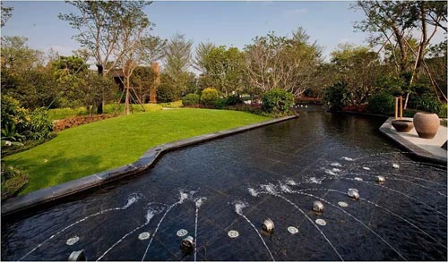 現(xiàn)代主義的硬景塑造形式與亞洲的造園理水相結(jié)合,或者是對亞洲傳統(tǒng)園林形式進行現(xiàn)代手法的演繹,在保留其傳統(tǒng)神韻的同時結(jié)合當?shù)匚幕剡M行大膽創(chuàng)新,呈現(xiàn)一種新的亞洲風格,多見于日本、東南亞等亞洲地區(qū)的新式園林項目,中國地區(qū)近年也有所呈現(xiàn),適用于現(xiàn)代風格定位并趨向于地方性風格化特征的項目。