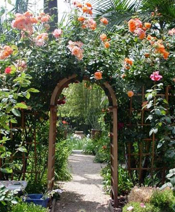 涼棚是另一個(gè)常見的裝飾結(jié)構(gòu)。在現(xiàn)代鄉(xiāng)村別墅花園里,木質(zhì)或鐵質(zhì)的彎曲涼棚有種歡迎來客的效果。根據(jù)需要,可以安裝一個(gè)簡(jiǎn)易的大門與涼棚搭配。在涼棚上種植一些開花類的攀援植物,有一種鮮亮的感覺。而且,涼棚還可以增加花園的高度,或區(qū)分出一些獨(dú)立的空間。