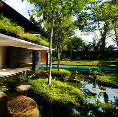 這個花園融合了日式的風(fēng)格,將石頭和綠植相結(jié)合,展現(xiàn)出自然清新之感。在一旁開辟一個小池,閑暇之余,可以在這之中養(yǎng)些小魚,悠然自得。